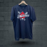 Nike “Anjo Bombers” Dri-Fit T-Shirt: Navy blue, short-sleeved, with a red diamond baseball graphic featuring “ANJO Bombers” text, crossed bats, and a Nike swoosh.