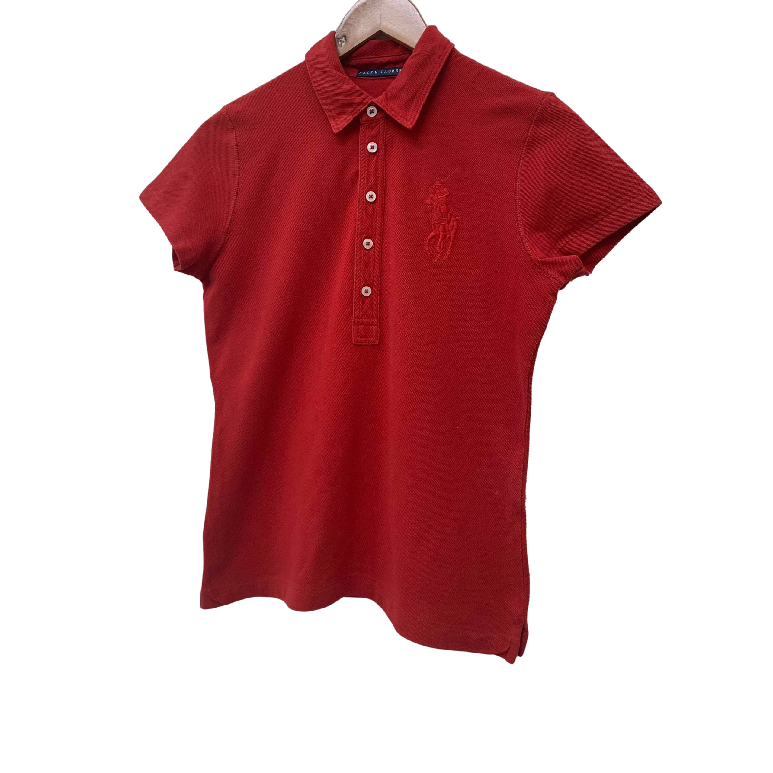 Ralph Lauren Red Polo Shirt: Short-sleeved, red polo with a classic collar, four-button placket, and tonal embroidered Ralph Lauren Polo Pony on the chest.