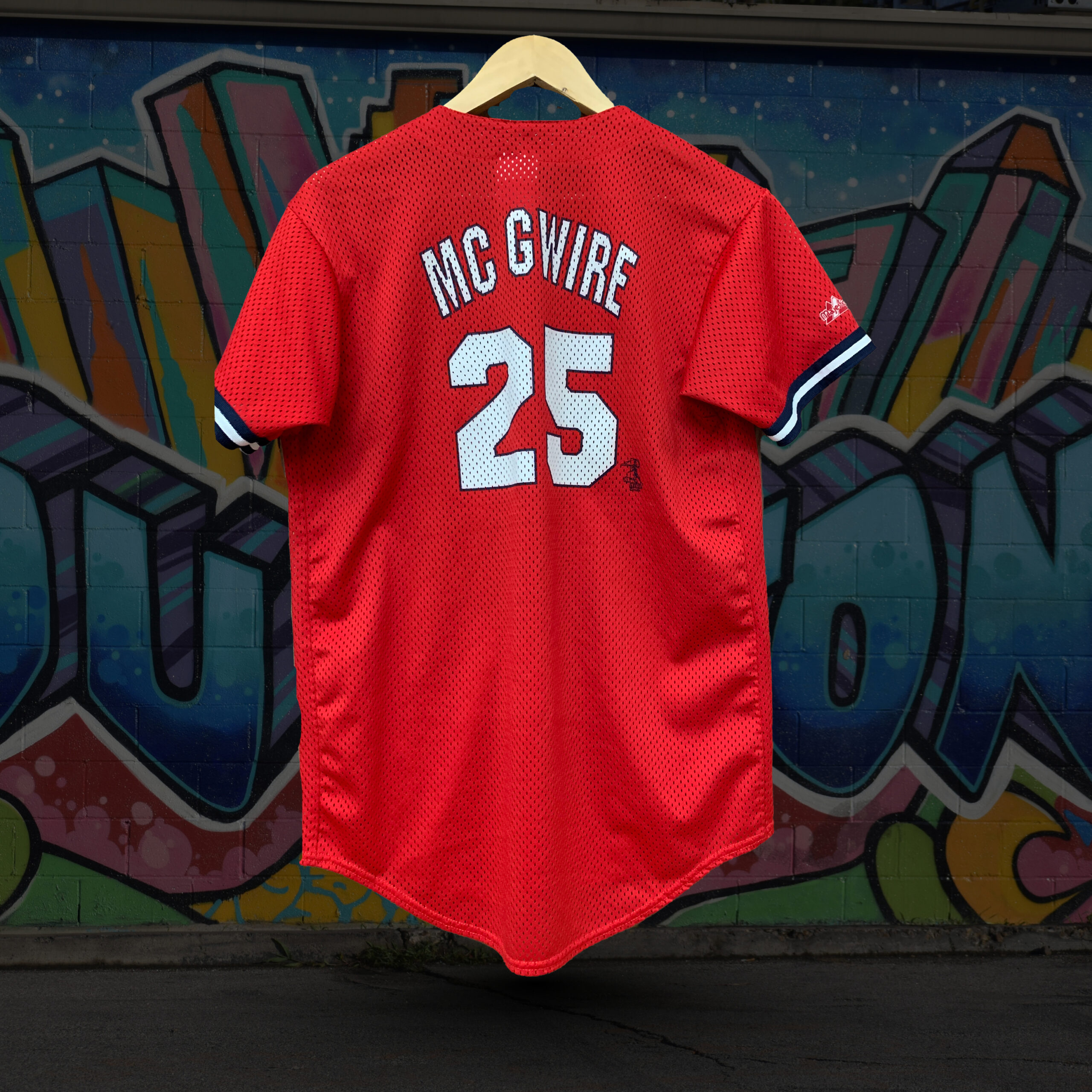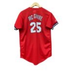 A red, button-up St. Louis Cardinals baseball jersey with the team’s logo across the chest.
