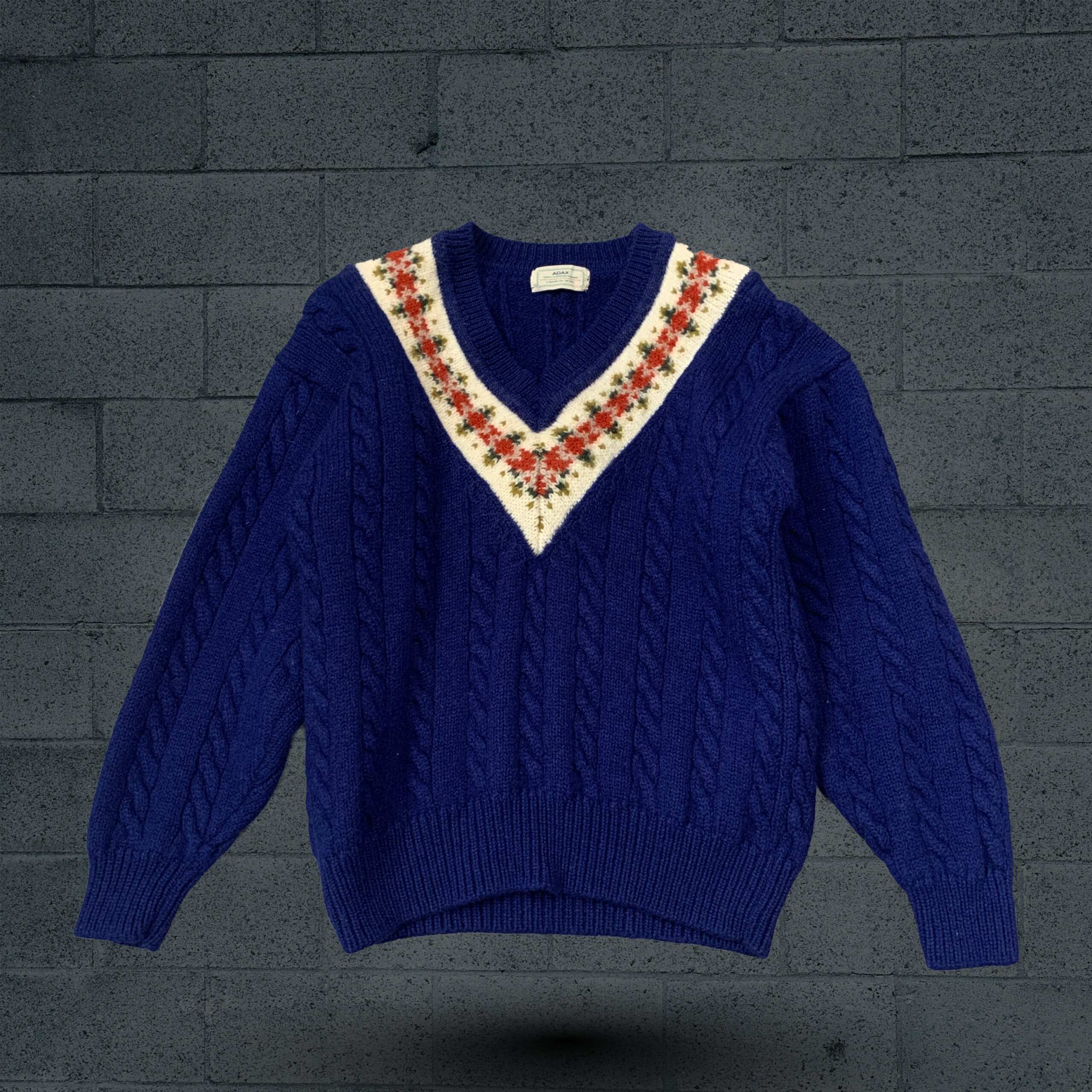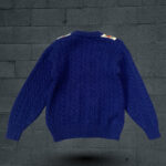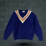 Add a touch of retro charm to your wardrobe with this royal Blue jumper featuring a soft V-neckline and delicate floral knit detailing. The rich blue hue makes a bold yet timeless statement, while the subtle floral pattern adds a touch of elegance and nostalgia. Crafted from a cozy, mid-weight knit, it’s perfect for layering or wearing solo. A standout piece that blends vintage character with everyday comfort.