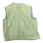 A vintage light green leather vest with a relaxed, open front. It features a drawstring waist for an adjustable fit and is lined with a smooth, contrasting fabric.